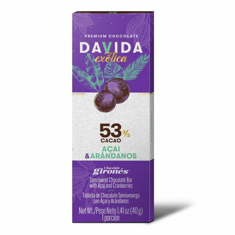 Barra De Chocolate Semiamargo Acai & Arandanosx40x 40 gramos