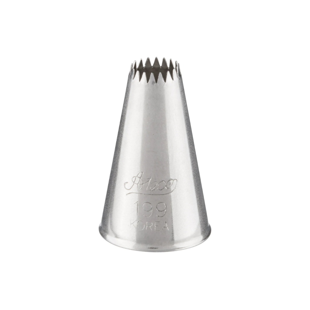 Boquilla fabricada en acero inoxidable para decorar cupcakes, tortas y galletas. Los dientes finamente cortados crean decoraciones con muchas aristas
