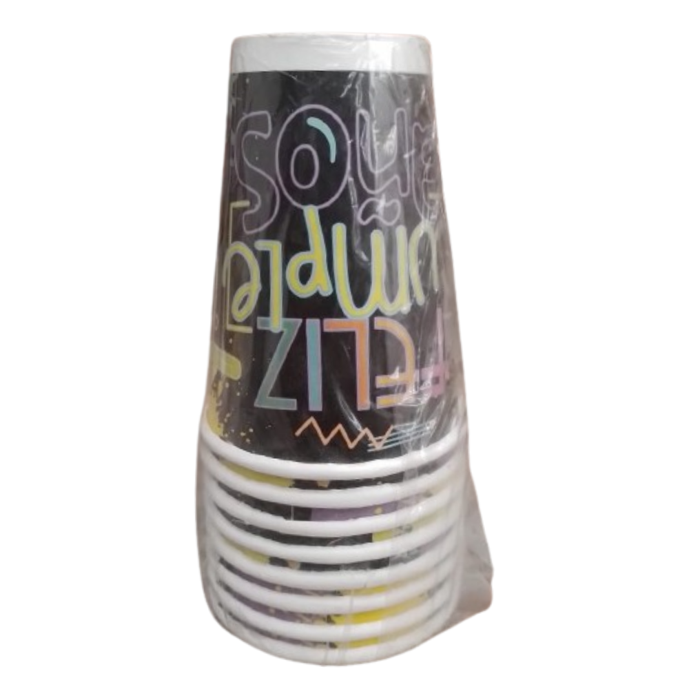 Vaso Neon Cumpleaños Paqx 8 Unds