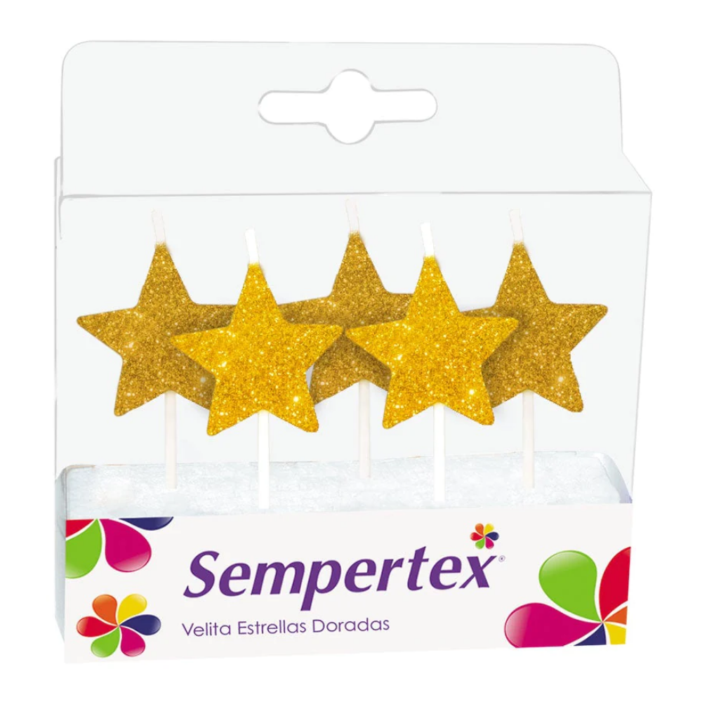 Velita Estrella Escarchada Dorada x 5 Unidades